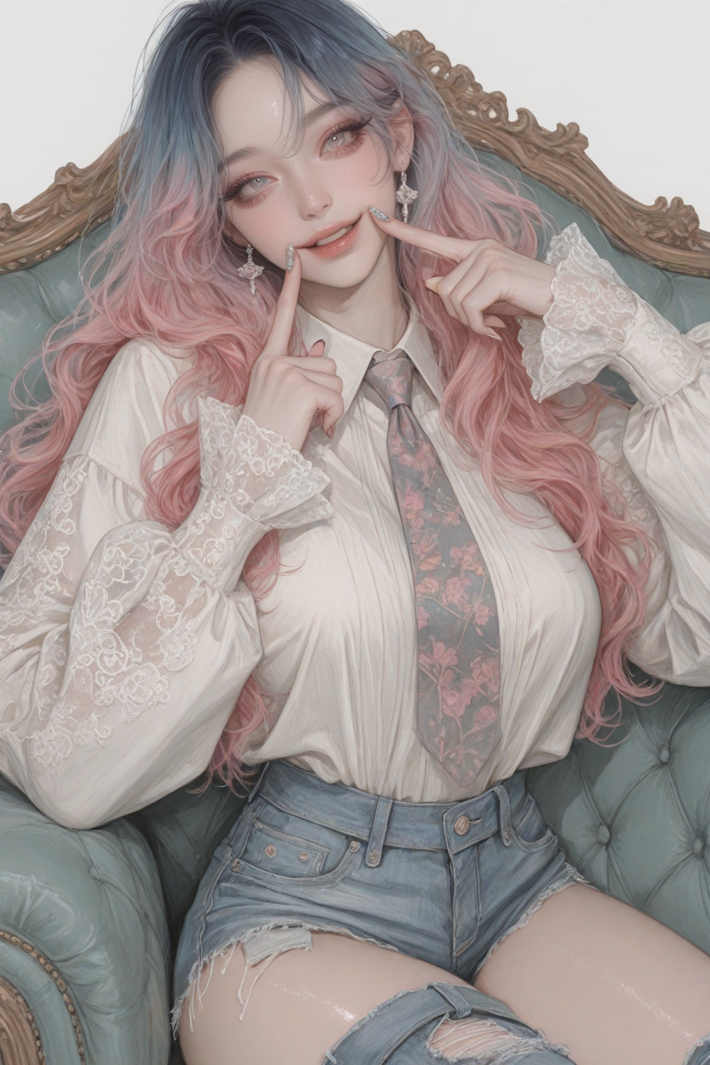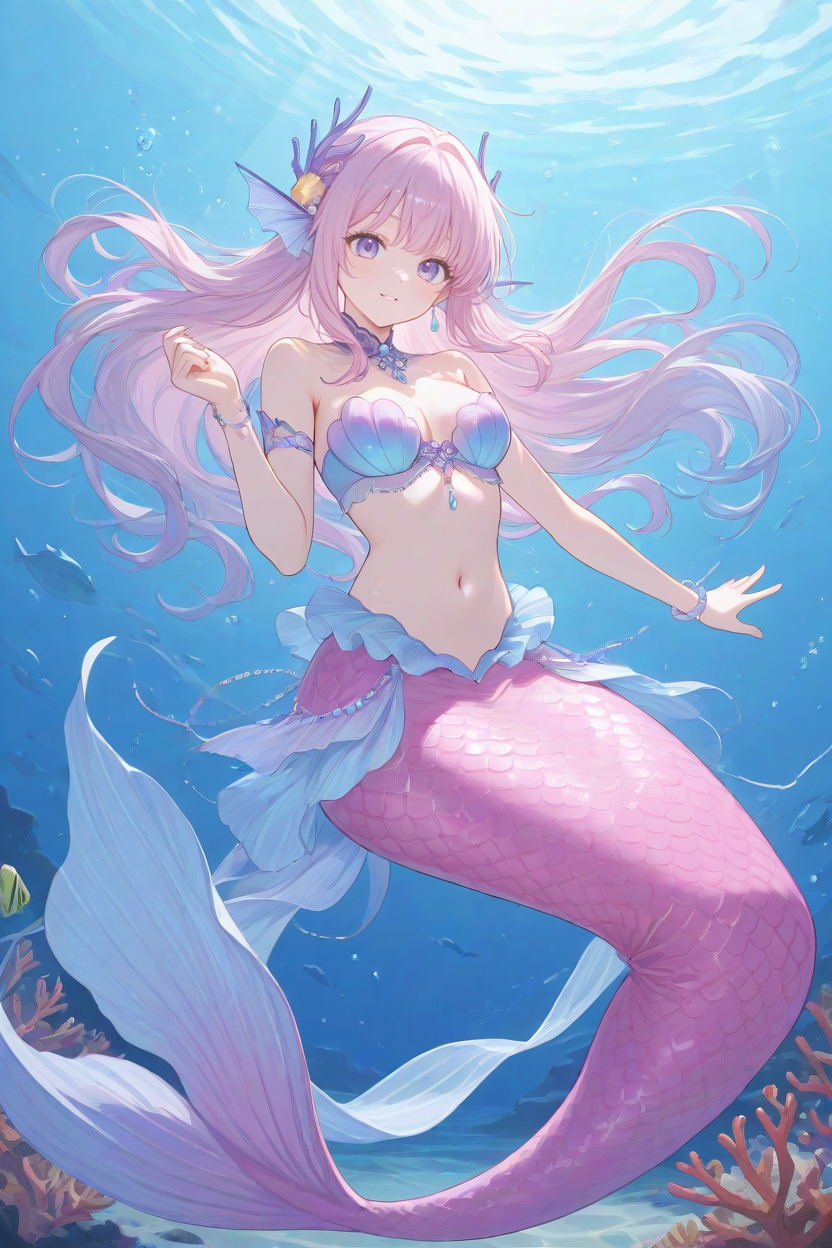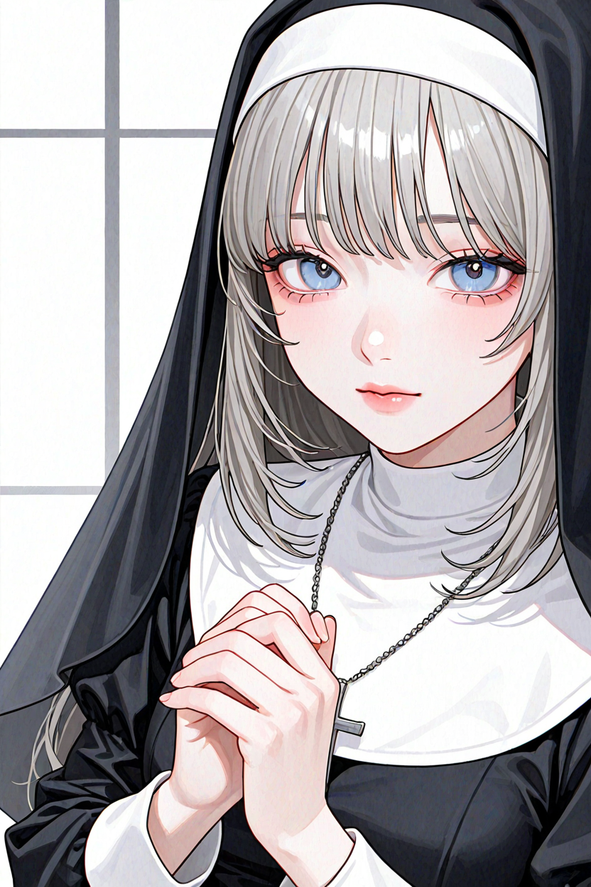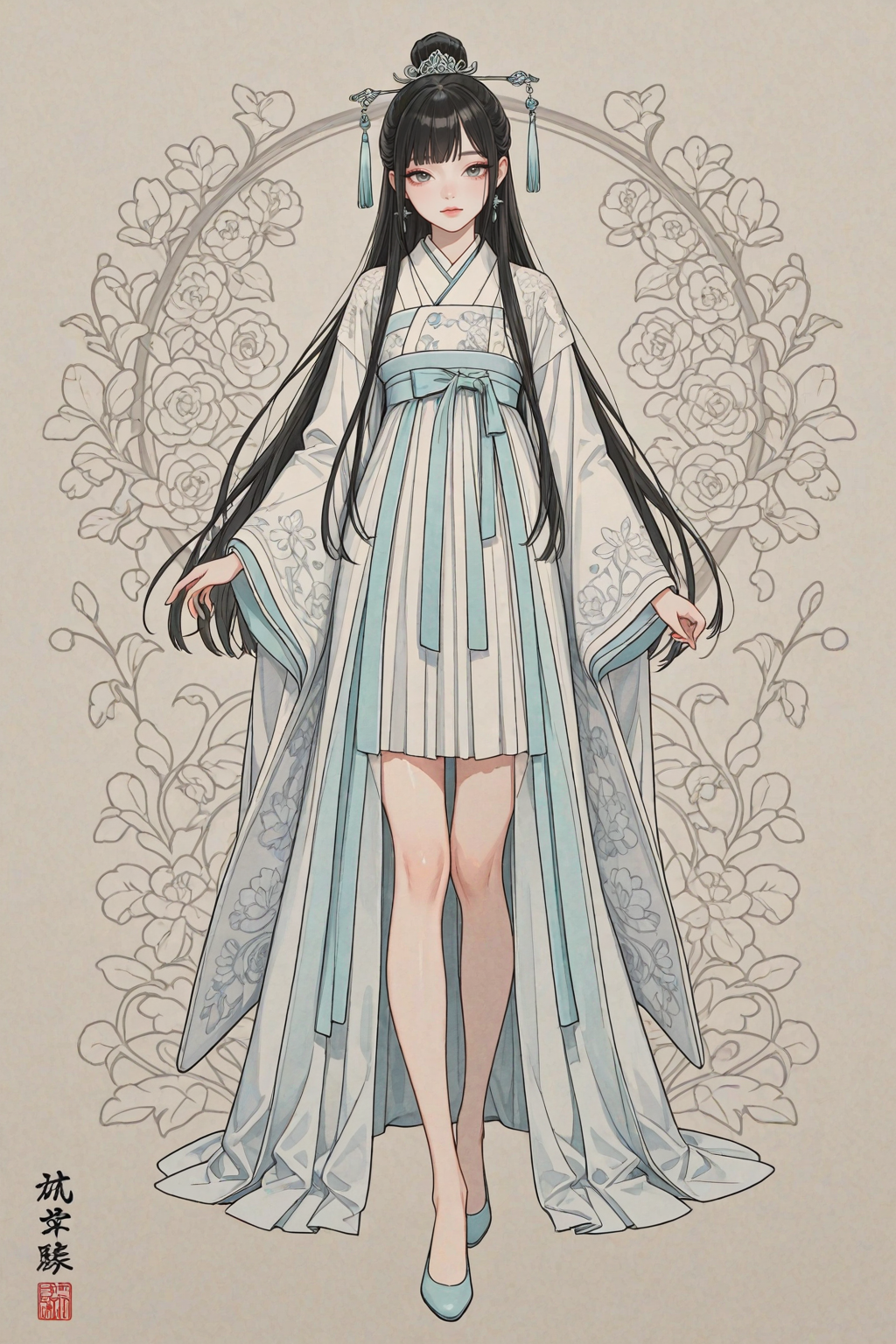 1girl, long black hair, blue eyes, maid dress, white apron1girl, long black hair, blue eyes 就是人設的部分。dress, silk, off-shoulder, white, lace trimwhite silk off-shoulder dress, lace trim,表示「白色絲質露肩洋裝,蕾絲裝飾」。masterpiece, best quality, highres等品質詞條correct anatomy, hand detailsupper body、portraitdetailed face, perfect facemermaid tail, no legs, fish taillegs, human legs, feetmale focus, manly, masculine, 1boy(你的人設), nurse, male focus, manly, 1boyfemale focus, 1girl。詞條放在服裝詞附近效果較好。female, breasts, wide hips 到 negativemale, flat chest 到 negative(依需求調整)(maid dress:1.3)dress 和 pants)盡量擇一描述red dress 而非 dress, red。solid color 避免模型自由發揮,或提高顏色詞的權重。silk dress、lace blouse、PVC skirt。0.7–0.8 開始測試,觀察效果再調整。anime style、illustration